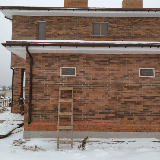 • монолитная плита • внешние и внутренние стены • облицовка с утеплением минеральной ватой • кровля металлочерепица