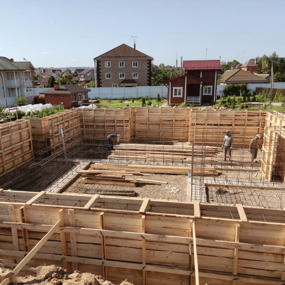 • монолитная плита под ангар 20*10м • жилой дом из блоков 11*8м